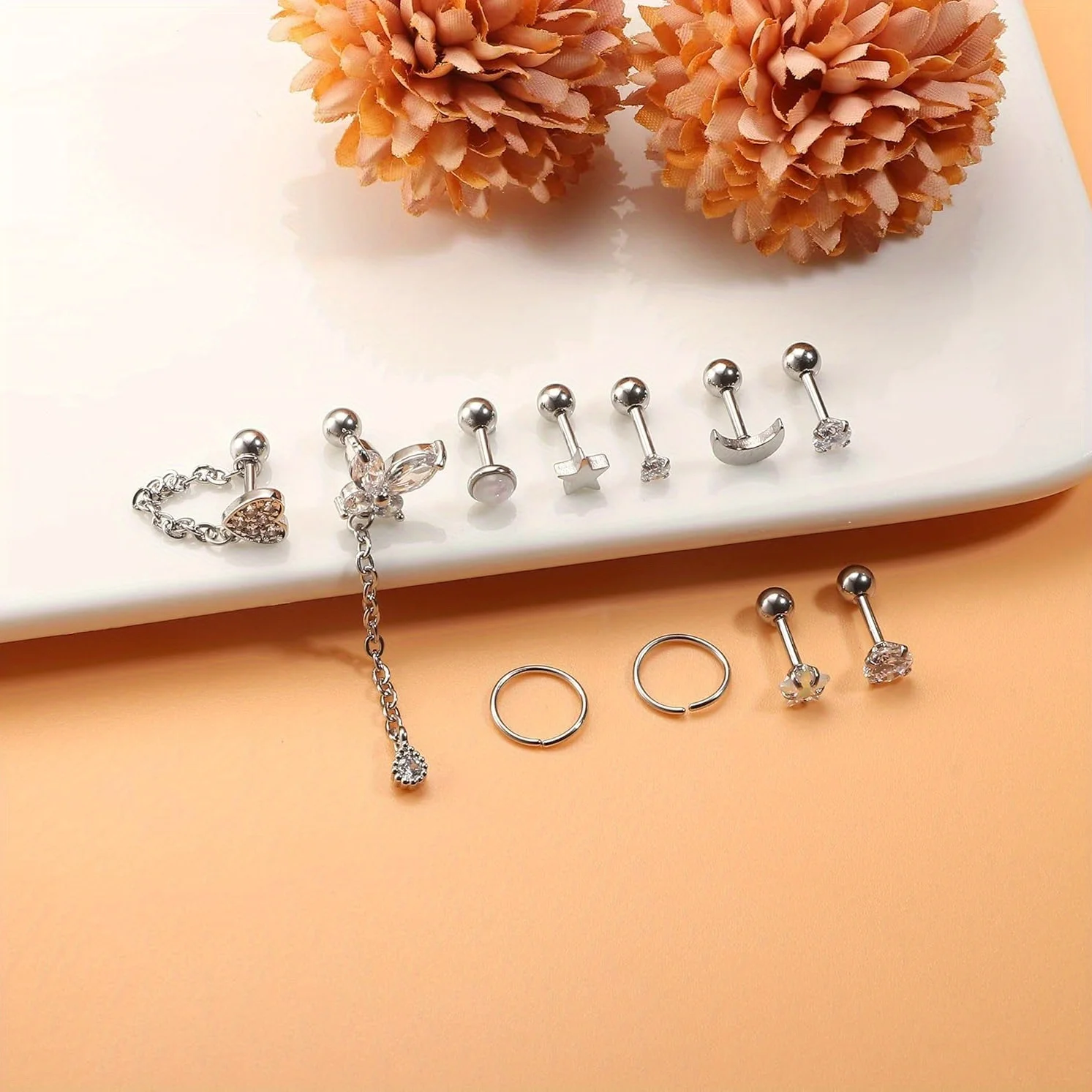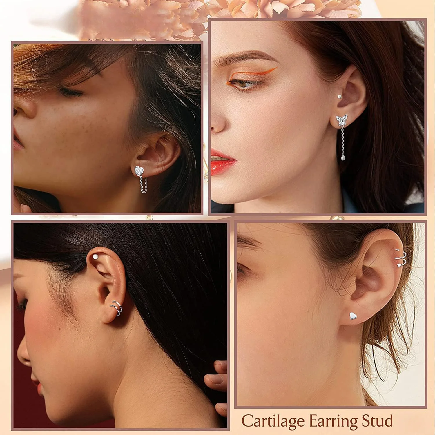 أقراط غضروف نسائية Drperfect – هوب من الفولاذ المقاوم للصدأ بتصميم قلب وزهرة