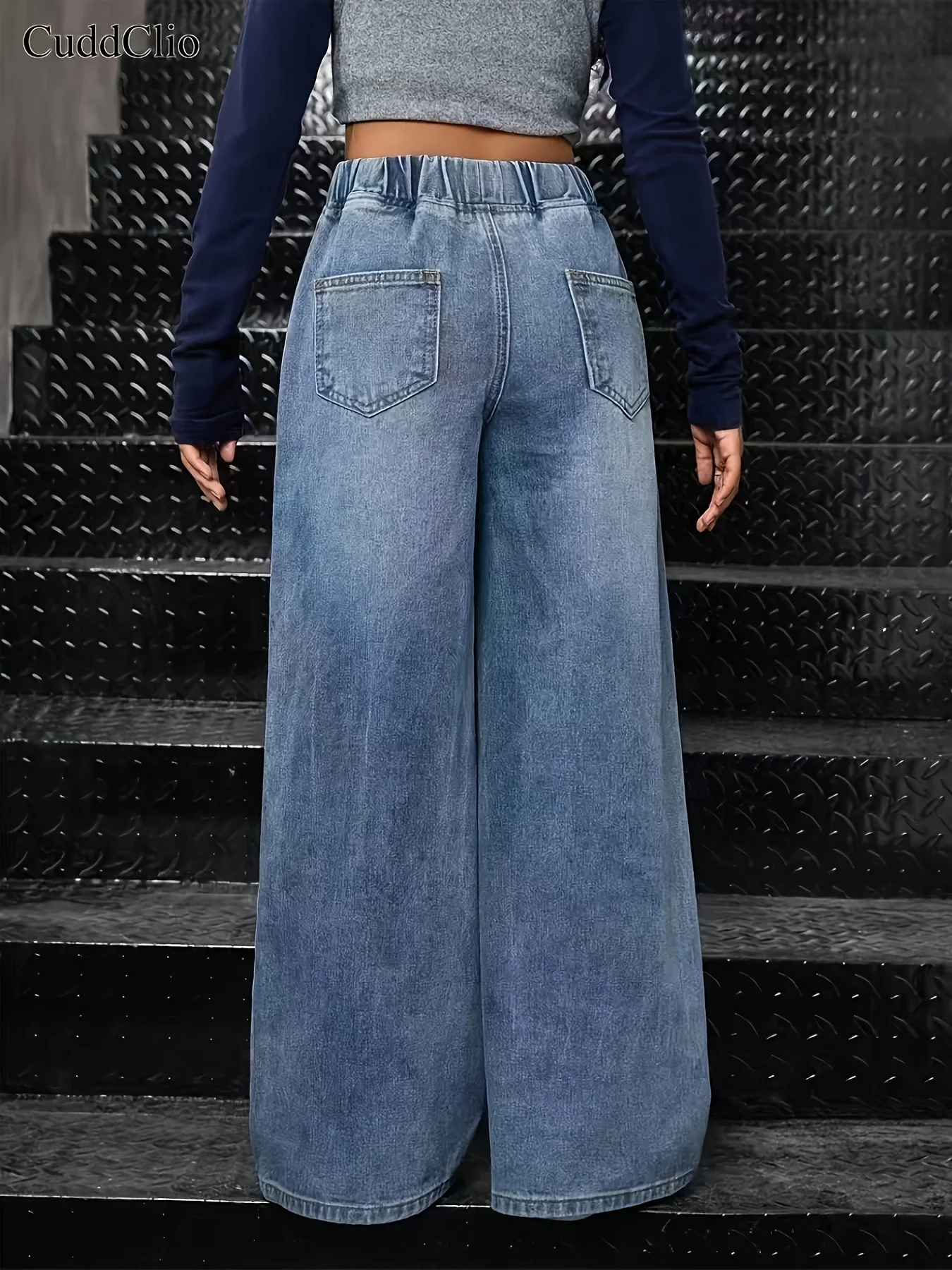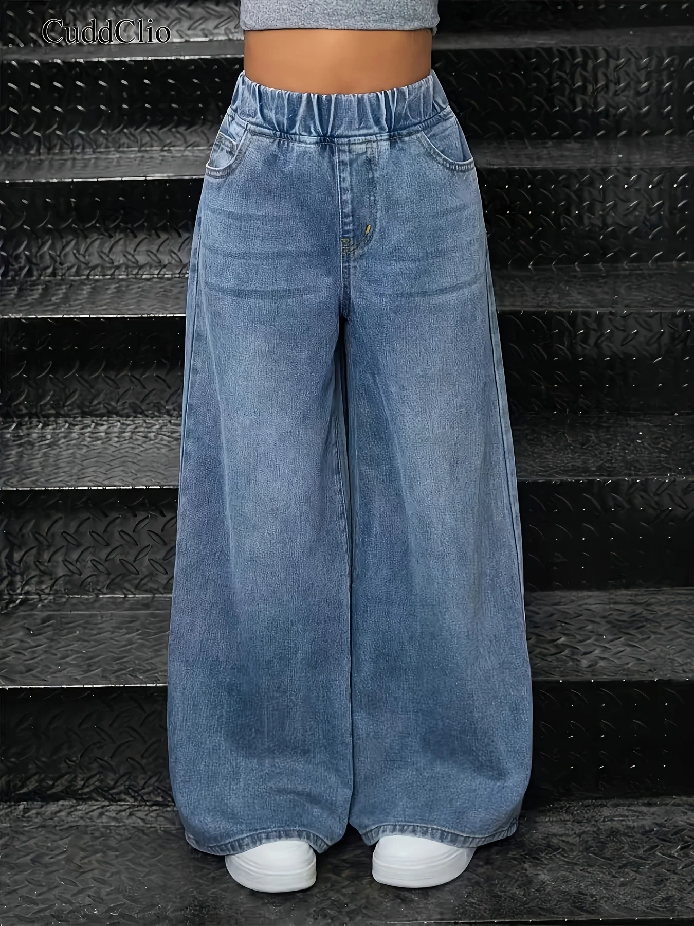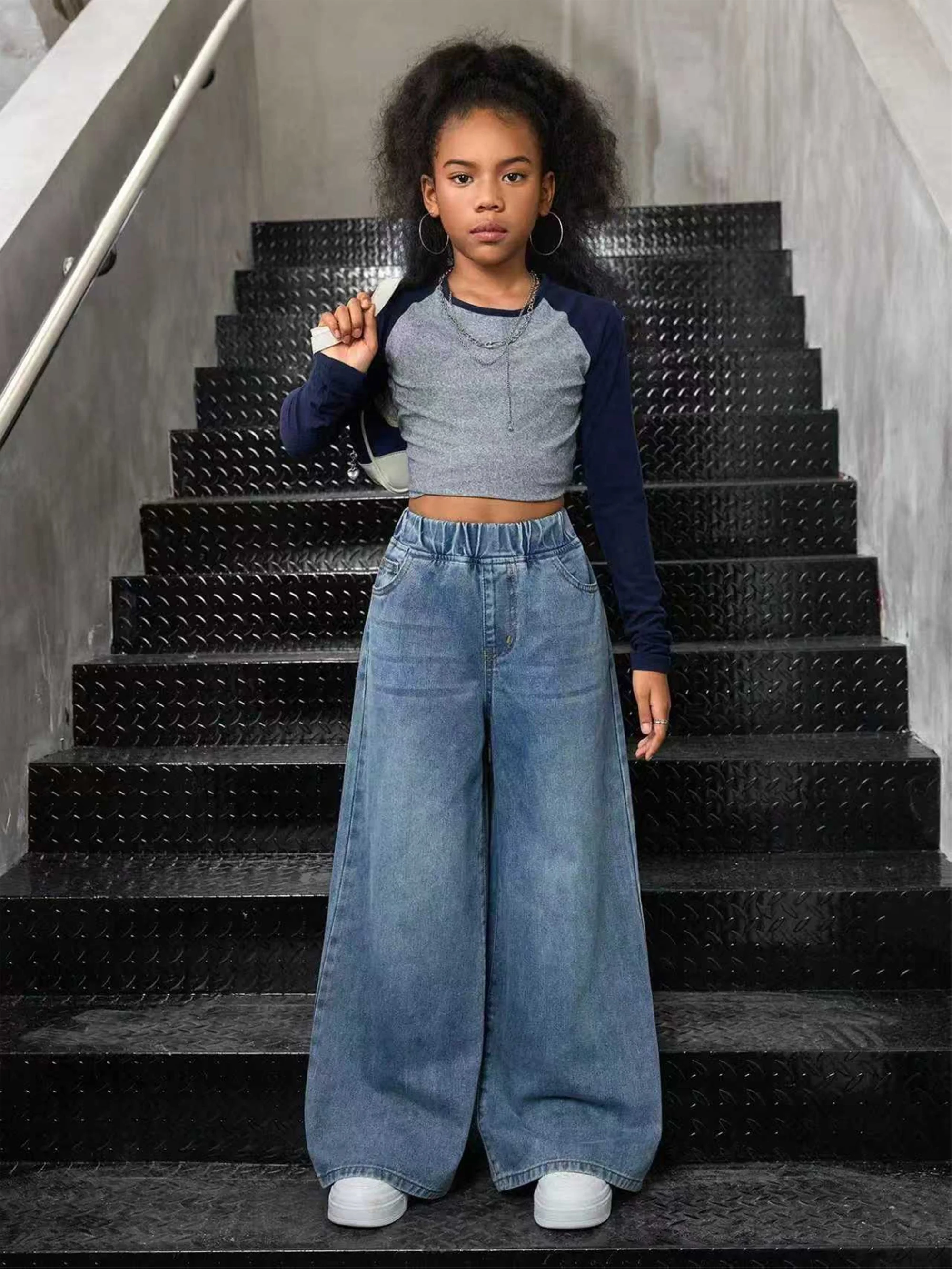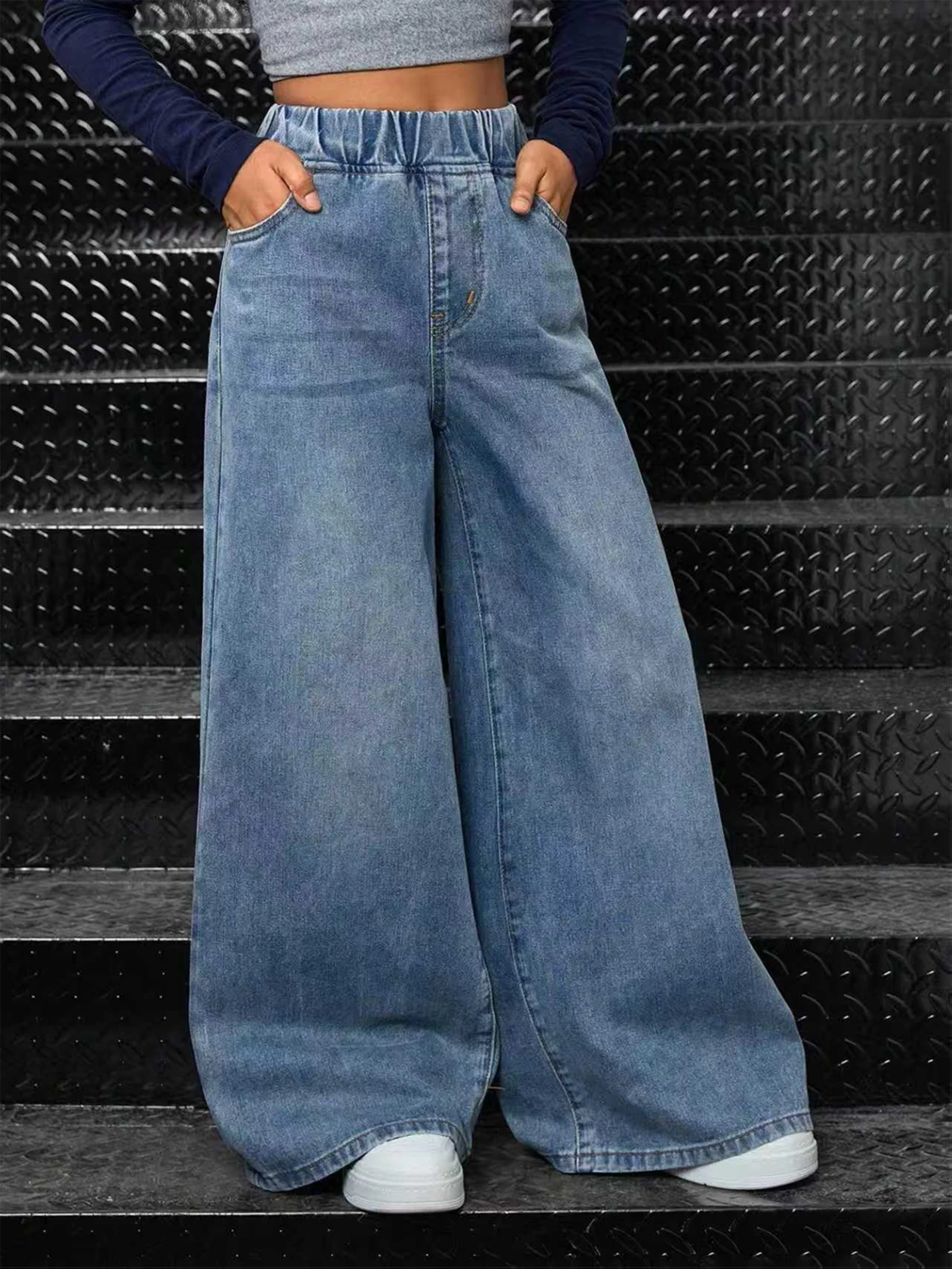 بنطال جينز بناتي واسع ستايل Y2K – دنيم مغسول بخصر مطاطي مريح