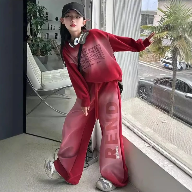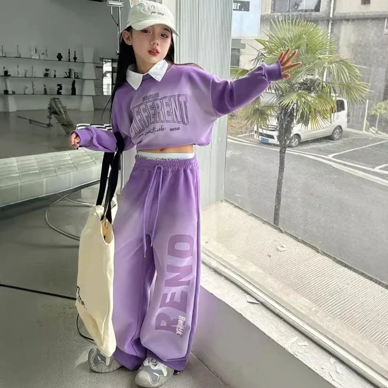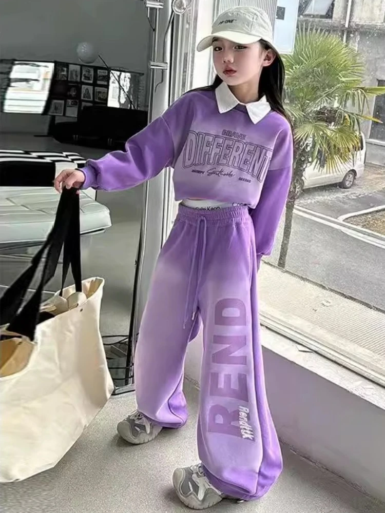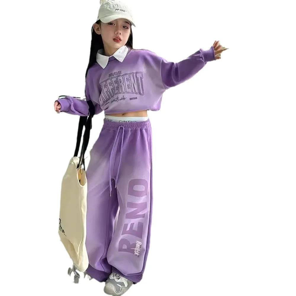 طقم أطفال بناتي قطعتين سادة – بلوزة وبنطلون كاجوال مريح للخريف والشتاء