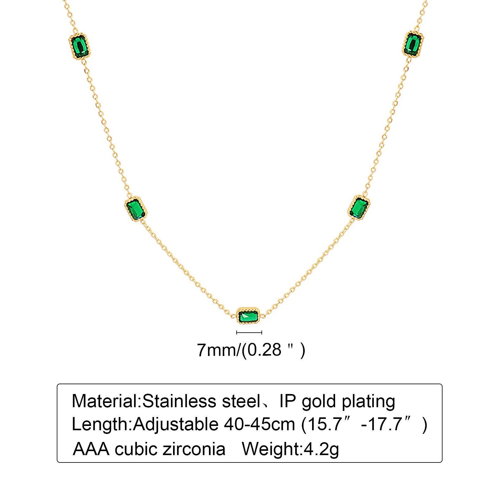 قلادة نسائية كلاسيكية بزركون أخضر – سلسلة كريستال من الفولاذ المقاوم للصدأ مطلية بالذهب